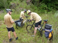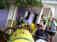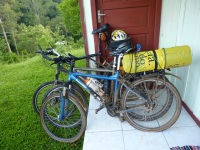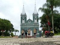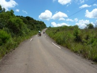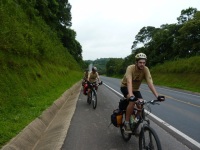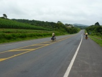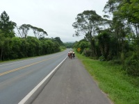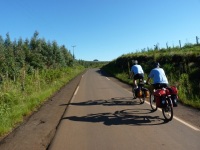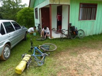 Ok, ok, voltemos ao "dia 0", fim do dia à lusco-fusco e 18ºC: Du e Lulis entram na sala de embarque da rodoviária de bicicleta (não, não uma rodoviária de bicicleta, uma de ônibus mesmo) e megazordicamente transformam um par de cicloturistas em dois malas médios, uma grande mala grande e duas desmontocicletas. Muito bem assessorados pelos funcionários da princesa (súditos da realeza), ciclo turistas e bagagens rumam seguros em excesso para Prudentópolis. Não muito distante dali, Mr. Heil e Thiago rumam (como um raio) para o mesmo destino. Uma bela noite de sono em hotel, todos na expectativa de começar a saltitante expedição (e que saltos!) no dia a seguir. Dia que tinha como objetivo, diga-se de passagem, a "Estrada Velha da Serra da Esperança" (rá!).