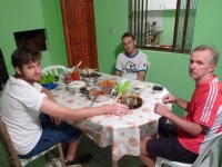 aquele caras que comiam mandioca pela raíz, só que tomando café da manhã em hotel