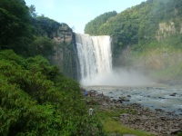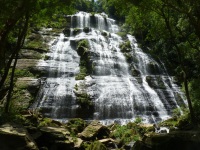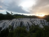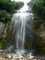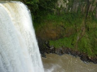uma queda gigante com uma praia pra lá de úmida e pedregrosa