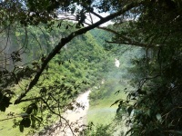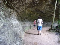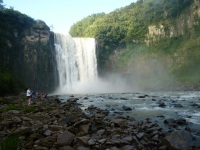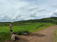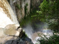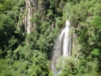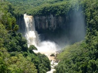 Reabilitados, retomamos: ainda tinha mais um salto pra visitar, o Salto São João (com tanta igreja e salto com nome de santo fica difícil entender porque não acreditávamos na redenção do picolé). Poucos quilômetros e aportamos no primeiro mirante, no acostamento da estrada. Víamos ali outro grande salto: uma queda forte e sonora que dava início a um vale tão impressionante quanto a do Rio Branco. Logo encontramos o acesso ao São João em uma pousada homônima: um pedaço vai carro, depois só moto, depois só bike, depois só-co-pé mesmo. Se tem um mirante que assusta quanto à proximidade (e insegurança) é esse. Mas no topo do Salto São João, ouvindo a queda rugindo e o som batendo forte no peito, acaba valendo a pena.