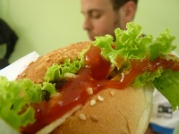 o sanduíche, obviamente. alegria alegria, não vai chover!